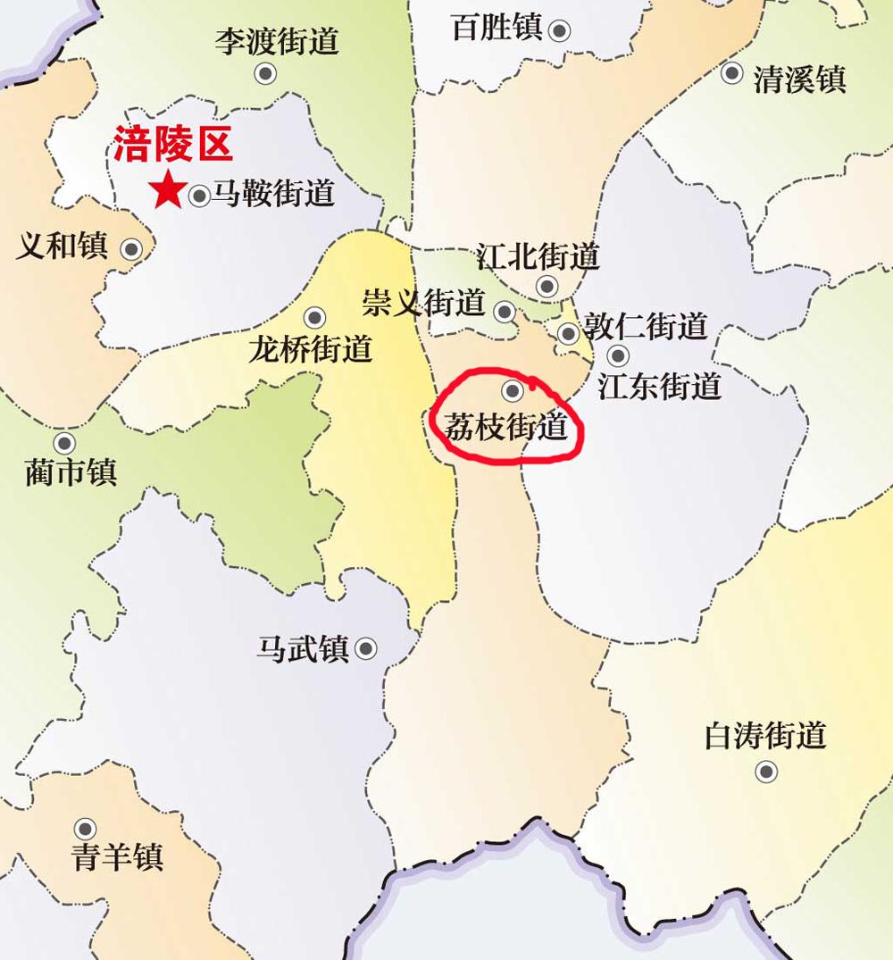 涪陵的江南主城主要由敦仁、崇义、荔枝三个街道组成,而荔枝街道有一大优势,那就是它的幅员面积,约126平方公里,这可比敦仁、崇义大很多,即便敦仁、崇义两个街道面积加起来(约16平方公里),还不及荔枝街道的零头。敦仁、崇义是两个袖珍街道,而荔枝则是一个“巨无霸”了。