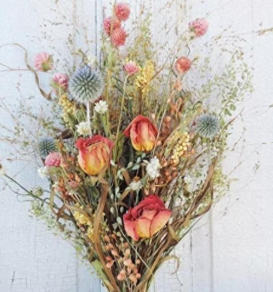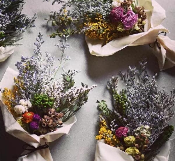 一般是将买回来的花,扎成一束,放置在温和、干燥且通风的地方。干花的成品还会跟花的种类,空气湿度,温度会有变化。在三到五天,花就会逐渐变成干花。花变成纸那般脆,就说明干花已经是制作完成了。