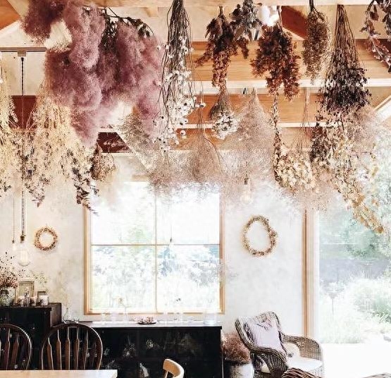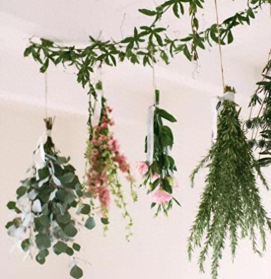 悬挂的时候,保持花于花之间的距离,让每支花之间保持空间。切忌不要让花被压挤变得难看。