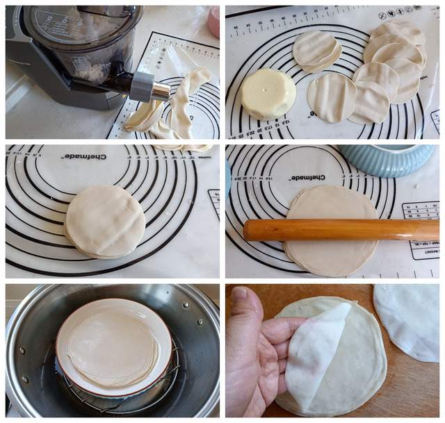 蒸春饼的做法很简单,如果不会揉面,可以用饺子皮来做;或者自己揉面自己擀皮做,都可以。