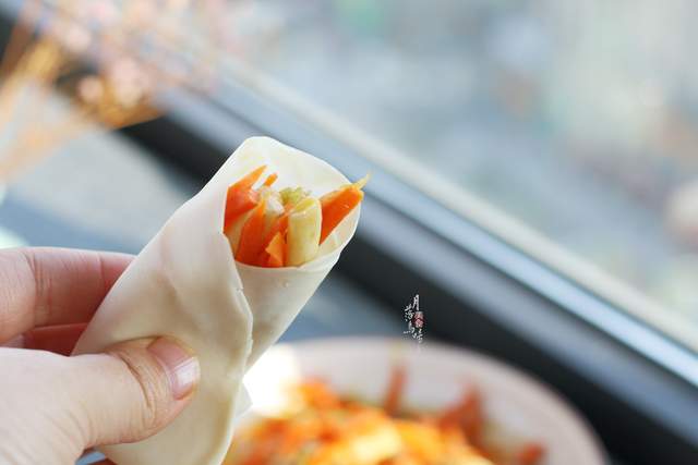这种春饼是蒸熟的,薄如蝉翼,几近透明,里面的馅料若隐若现,一口一个,又软又薄又有韧性,小朋友都能吃上十几张呢!