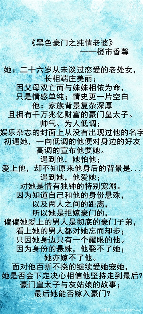 推语:这部作品没什么虐点,男女主之间也没有什么大误会,通篇比较甜。作者文笔非常好,虽然是豪门题材,却没有落入千篇一律的俗套。女主林清清是个大龄剩女(26岁就算大龄?)性格非常单纯,意外和男主相遇,男主属于非常有自己想法的人,知道自己想要的是什么,而且能够保护自己所爱之人。值得推荐的作品。
