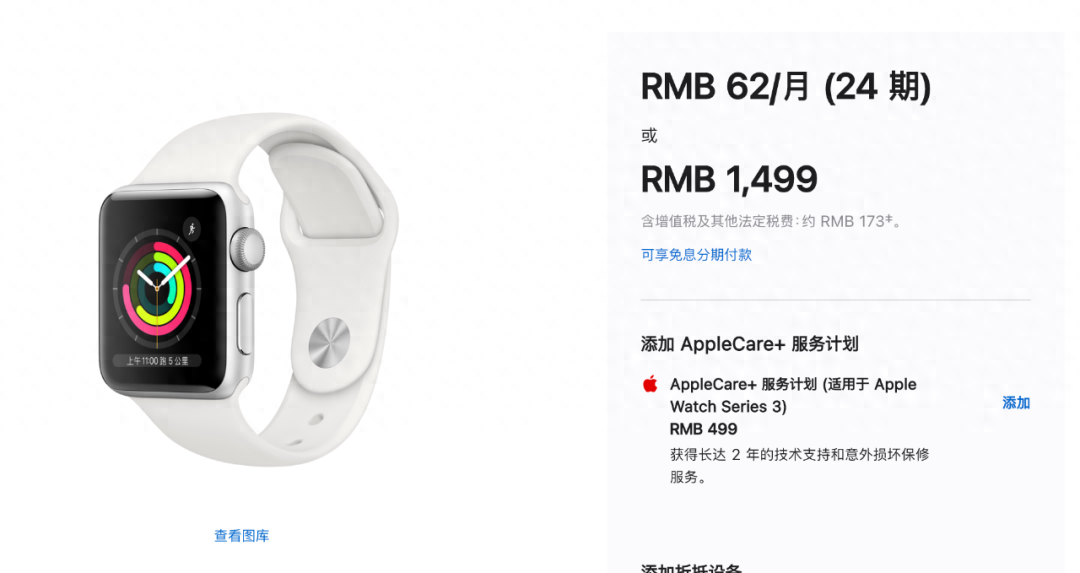 例如官网售价 1499 元的 Apple Watch 3 ,或者是一次性购买两个 HomePod mini ,那么 24 期免息后每个月只要还款 62 块钱。(四舍五入不要钱)
