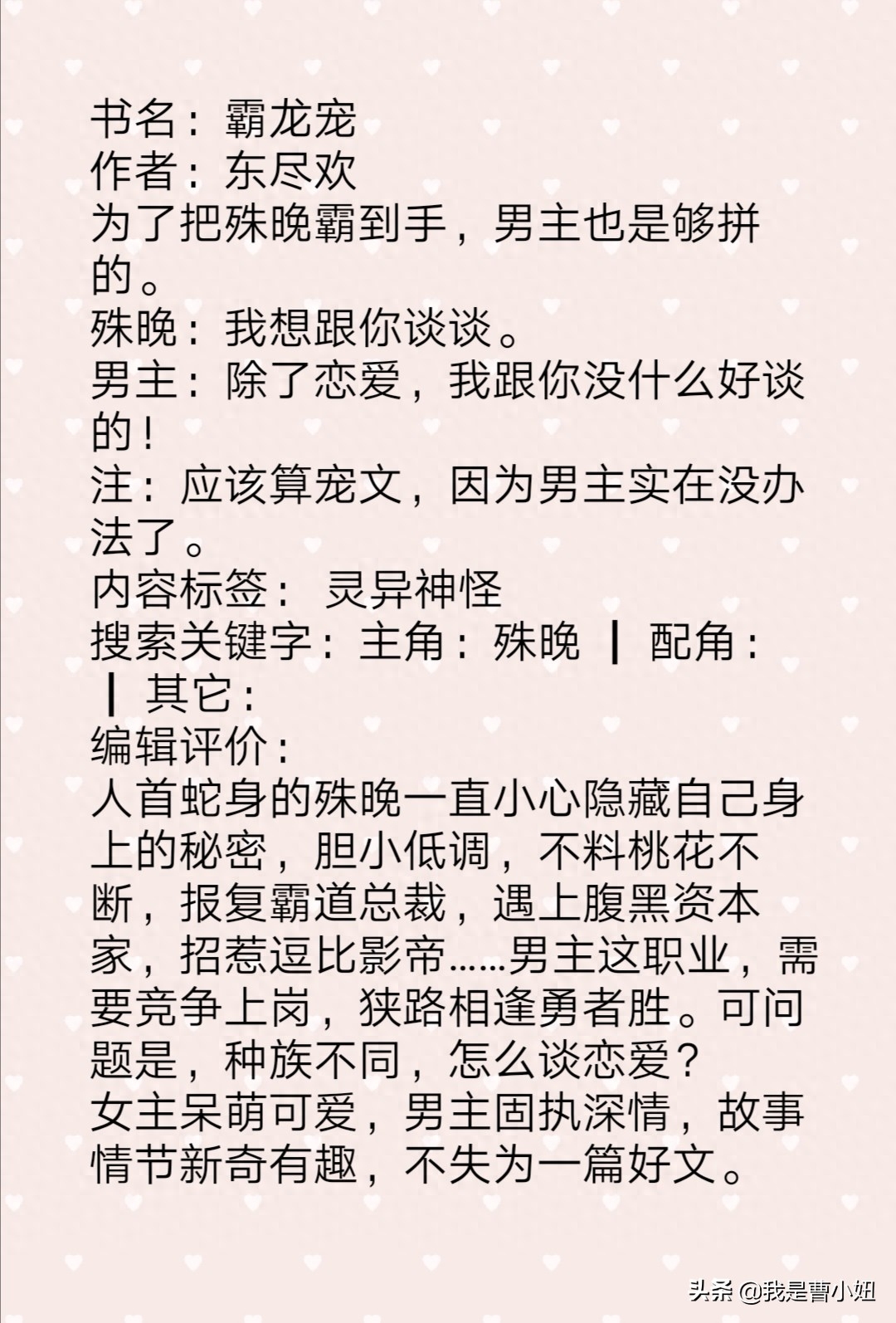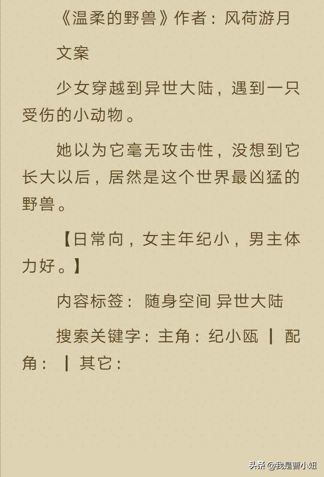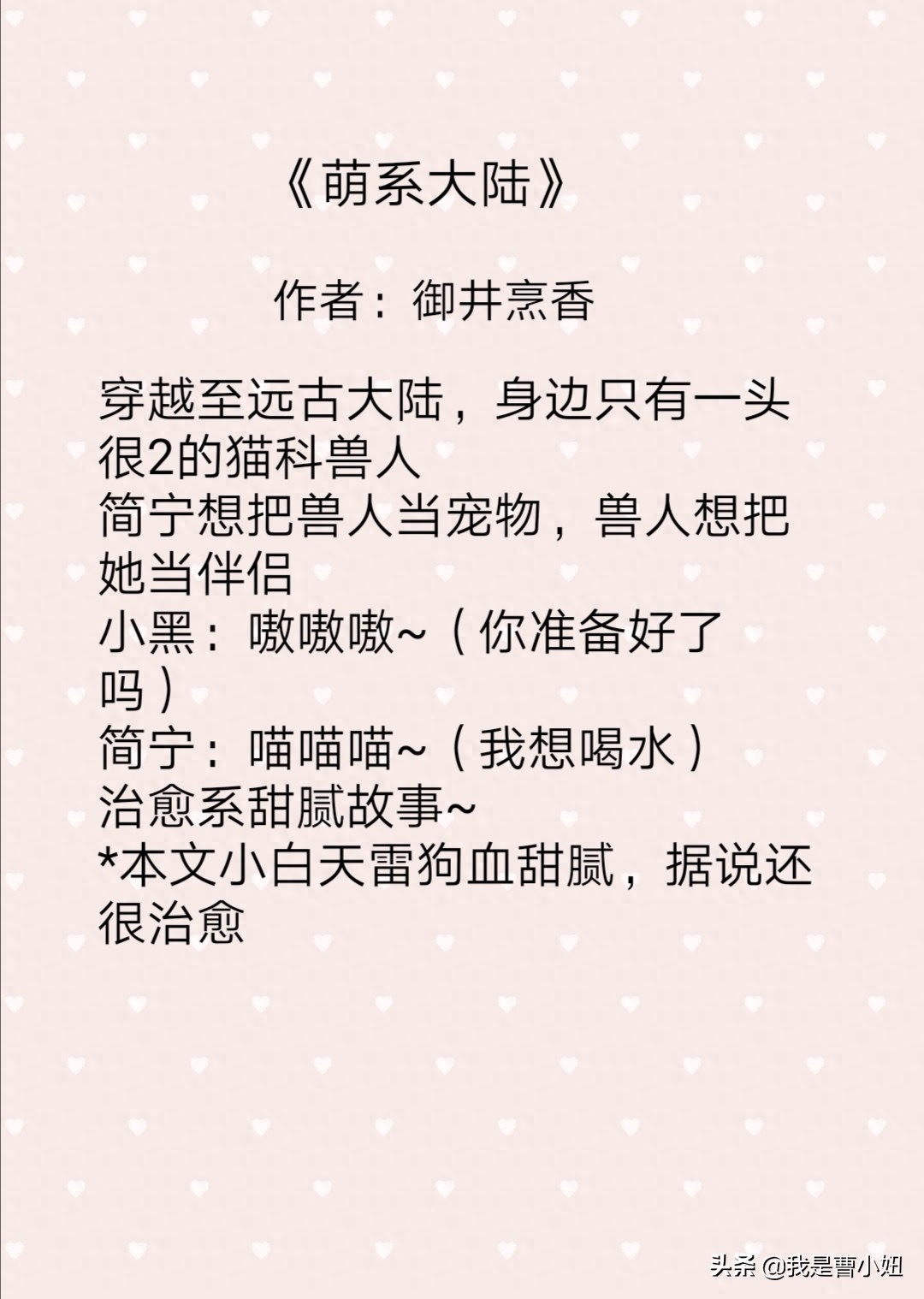 我是曹小妞,本期的推荐就到这里了,喜欢我的推荐记得关注哦,如果你有好看的网络小说,或者想看什么类型的小说 可以留言评论哦!