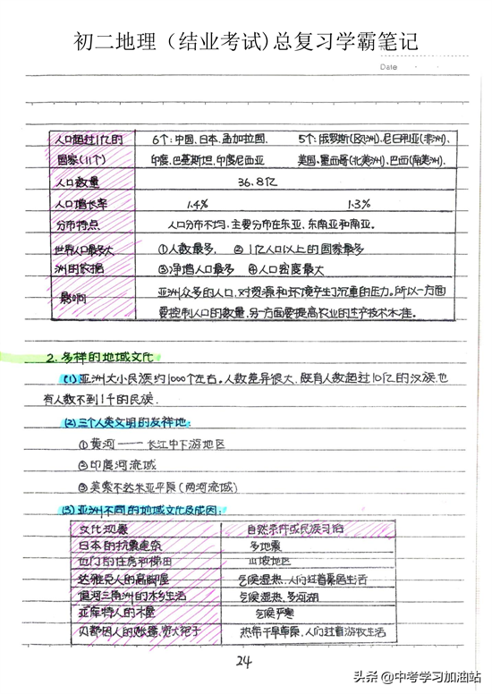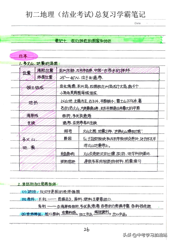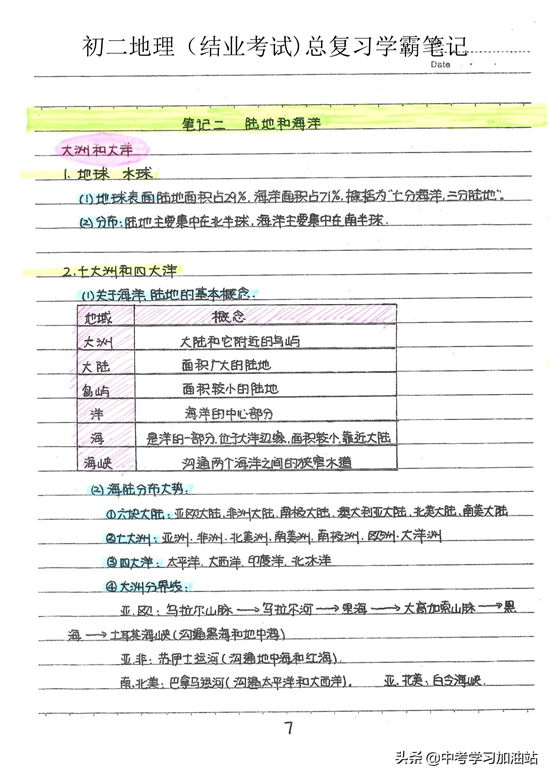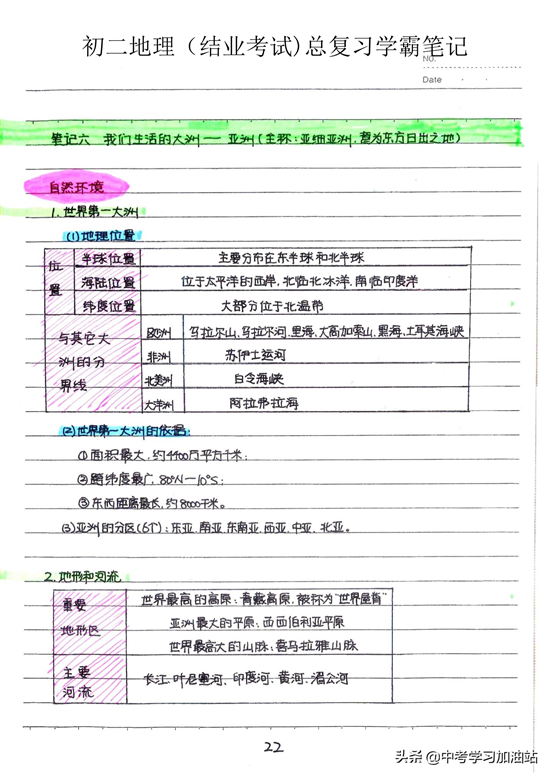 中考地理总复习(初二结业考)学霸笔记,这样学,也能拿下100分