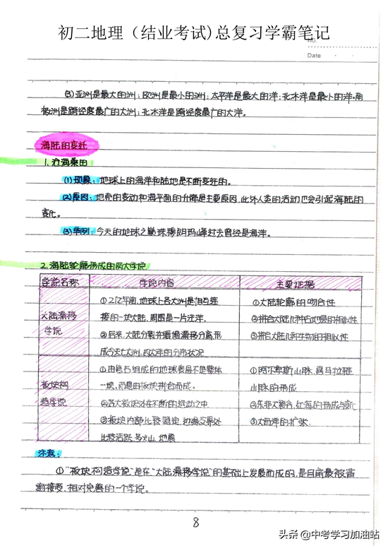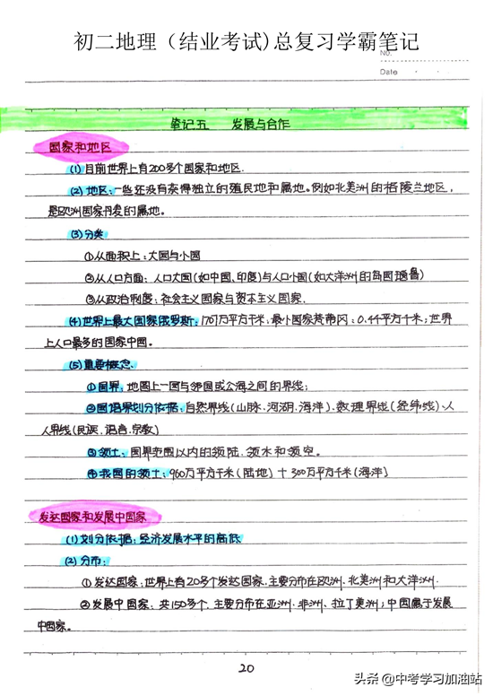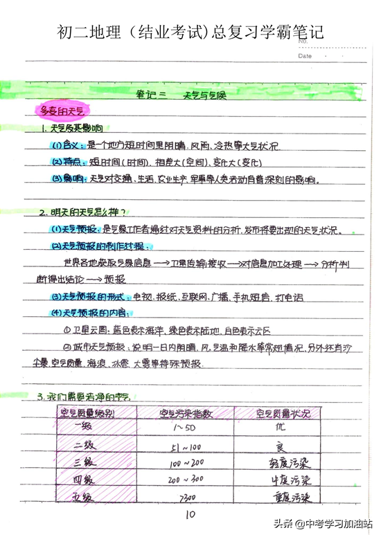 想要考好,就一定要针对每个考点去梳理,只是刷题、刷试卷是完全不够的。在此,我也是给大家分享一份中考地理总复习(初二结业考)学霸笔记,这样学,也能拿下100分。