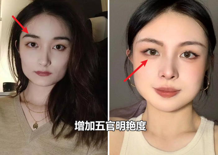 来放大我们的五官,以此弱化轮廓感所带来的顿感。
