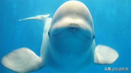 额头向外隆起突出且圆滑,嘴喙很短,唇线宽阔。身体颜色非常淡,为独特的白色。白鲸与其他鲸类相比,唯一明显不同的是:当夏季皮肤呈淡黄色的色调时,可以蜕换。