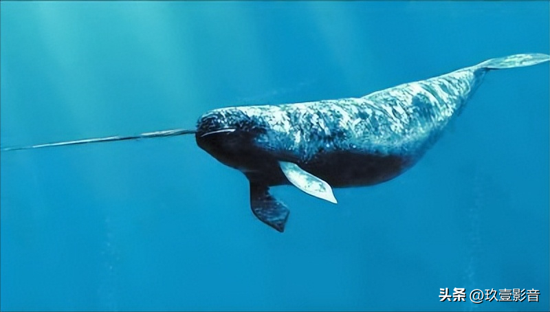一角鲸最引人注目的特征是它们脑袋上伸出的长牙,那是从左上颚突出唇外的犬齿,长度可达2~3米,呈螺旋状,因为长得像角,故而得名。
