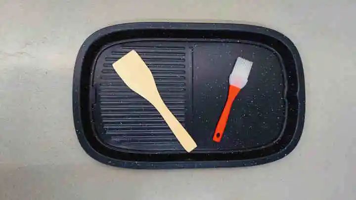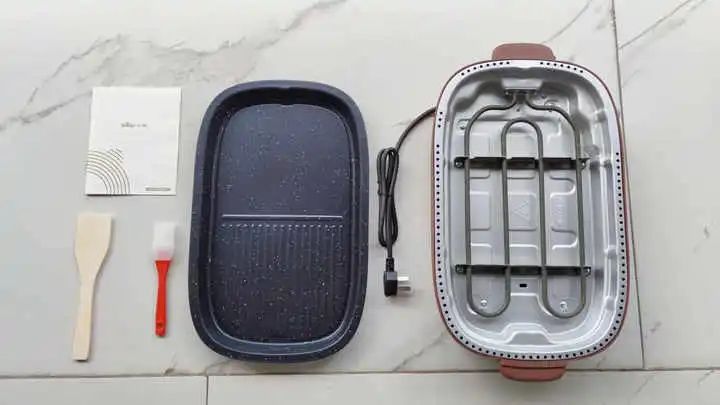 装箱配件比较简单,由主机、烤盘、硅胶刷、木铲、说明书组成。