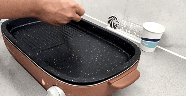 这款电烧烤炉组装很简单,只需要将机器放到平稳的地方,将烤盘放上去即可。