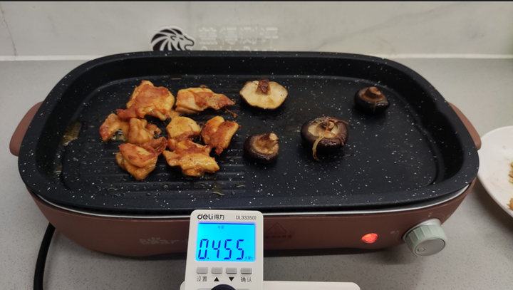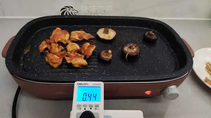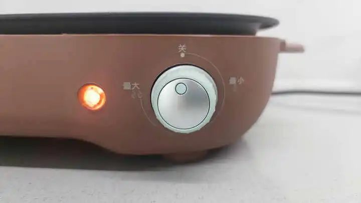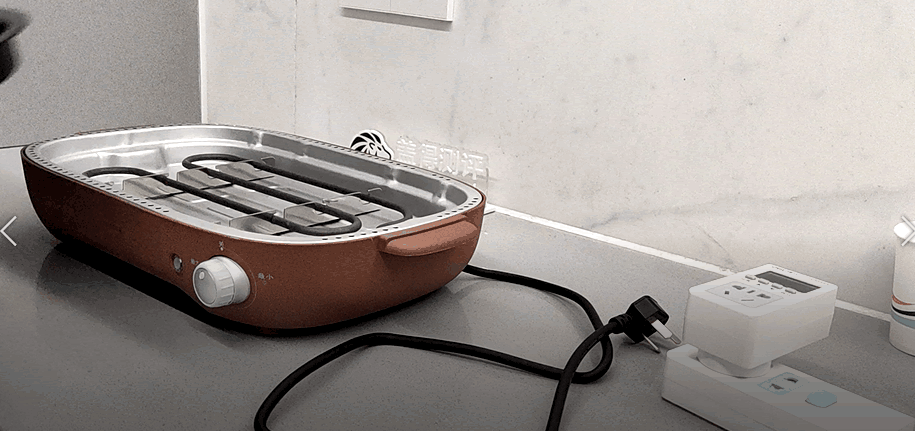 开始烧烤前,清洗好烤盘,然后将烤盘放置平稳,开关旋至最大功率预热,经过3分钟,就明显感觉到烤盘表面发热了。