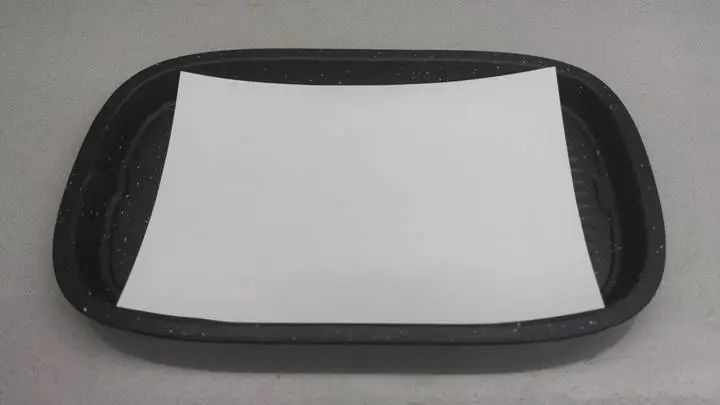 经过三分钟的预热,炉子已经可以正式开烤,为了测试不粘效果,我们设计了有无油纸两种情况下的实验,进行测试对比: