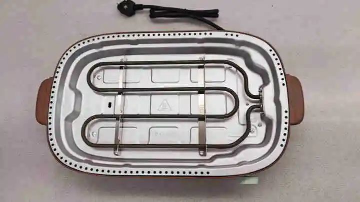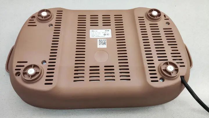 主机部分由棕色塑料外壳包裹,底下隔热盘是铝合金材质,我们在烤肉时并没有觉得外壳烫手,而烤管有三重U型的结构,基本能覆盖烤盘表面。