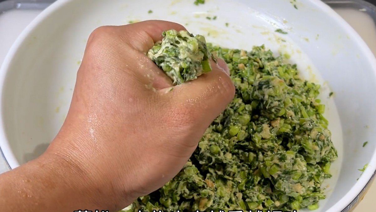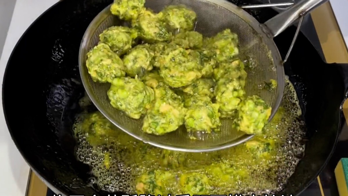 抓起一把,放在手心,用虎口挤出丸子,挤完时不要用手钻的太紧实,这样不容易炸透。