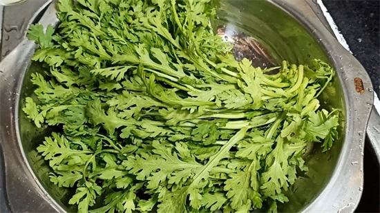 茼蒿含有丰富的膳食纤维、胡萝卜素、以及维生素含量丰富,不管是凉拌还是炒着吃都非常的美味,今天就分享到这里,希望我的分享能给大家带来收获。