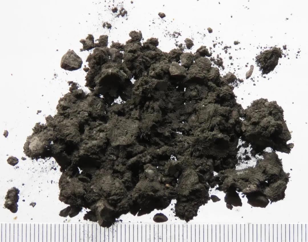 本品为不规则的碎块或颗粒。表面黑色。质硬而酥。无磁性。有醋香气。