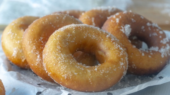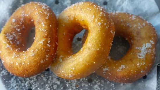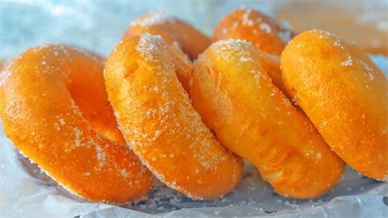这款用油炸的【甜甜圈】也是又香又软,更偏向于蛋糕的口感,于是它也被称为甜甜圈小面包,虽然是油炸的,但吃起来完全不油腻,吃起来的口感是非常的细腻柔软,和面包差不多,也是孩子爱吃的口味,甜甜圈的造型小巧迷你,两口一个,好吃到舔手指~
