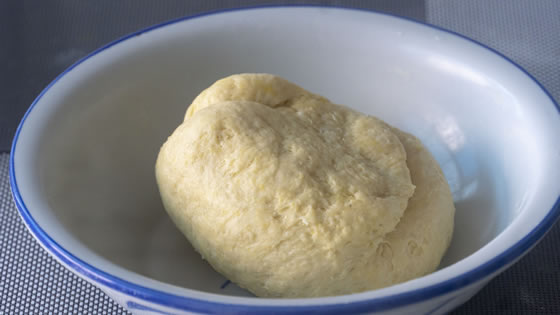 4、面团儿醒好后先排气,这个面团儿是偏柔软的,可以撒点干面粉