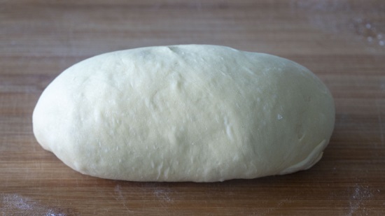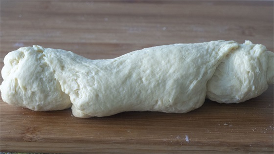 5、继续揉光揉圆,用擀面杖从中间压下去,翻过来整理下,再拉长一点儿,全部最好后醒发至2倍大;