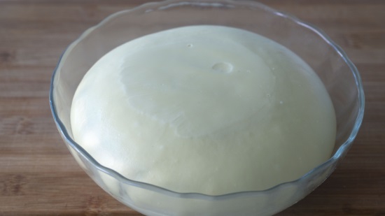 3、我们把它放到砧板上继续揉搓,像洗衣服一样一直揉,揉到可以拉出手套膜就可以了,