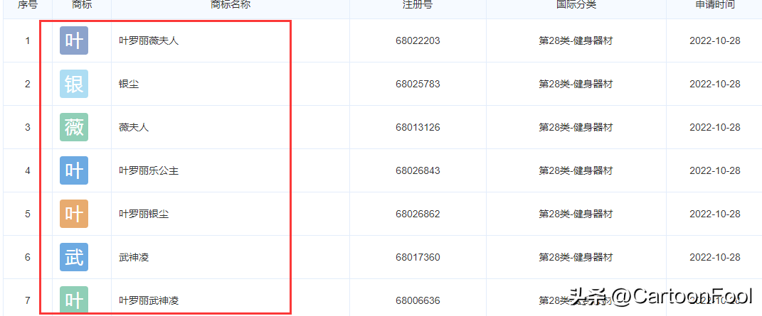 我们还可以看到“叶罗丽薇夫人”“叶罗丽银尘”“叶罗丽武神凌”“叶罗丽乐公主”都已经申请注册了,