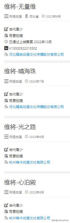 但是另外一部《维将》动画截止目前仅仅只有《维将-无量维》篇章通过了上线备案,剩余的三个篇章都没有备案了,
