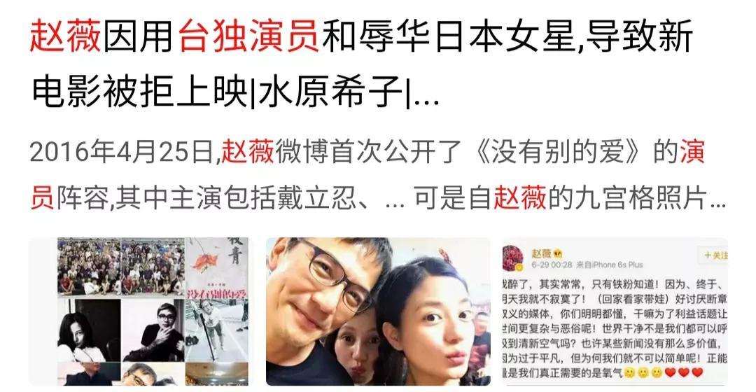 2001年赵薇参加美国曼哈顿《时装》拍摄春夏服装宣传片,冒着伤害全体中国人的感情,穿着日本军旗服装演出宣传(因为这个,赵薇在我国一次演出中被人泼粪),按道理当时就应该全网封杀,并且交由法律审判,但由于当时的种种原因,没有受到应有的正义审判。而同一时期韩国的一名女演员,因谈论慰安妇问题言论不当就被韩国全网封杀了!!在电视台前跪地道歉也没用!