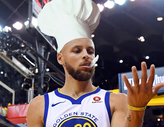 斯蒂芬·库里有个英语绰号,叫做Chef Curry——咖喱大厨。每当他手感火热时,英语解说员就爱念叨Chef Curry cooking——咖喱大厨又开火了!