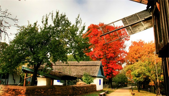 罗马尼亚著名的迪米特里古斯蒂民族村博物馆在树木繁茂的海勒斯特勒乌公园(Herastrau Park)中延伸开来。