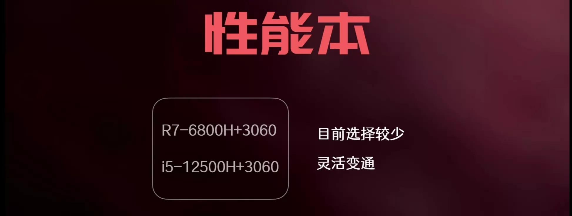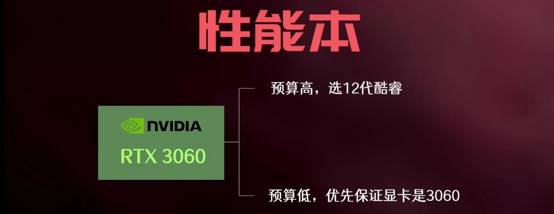 (2).性能本。优先考虑3060,最好带独显智连。CPU方面呢,预算高,买英特尔。