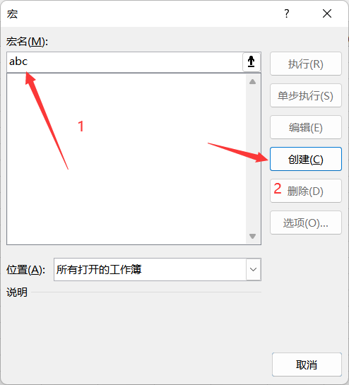 3.创建后,会弹出一个vb界面,输入如下代码:(感谢大佬赐予代码)