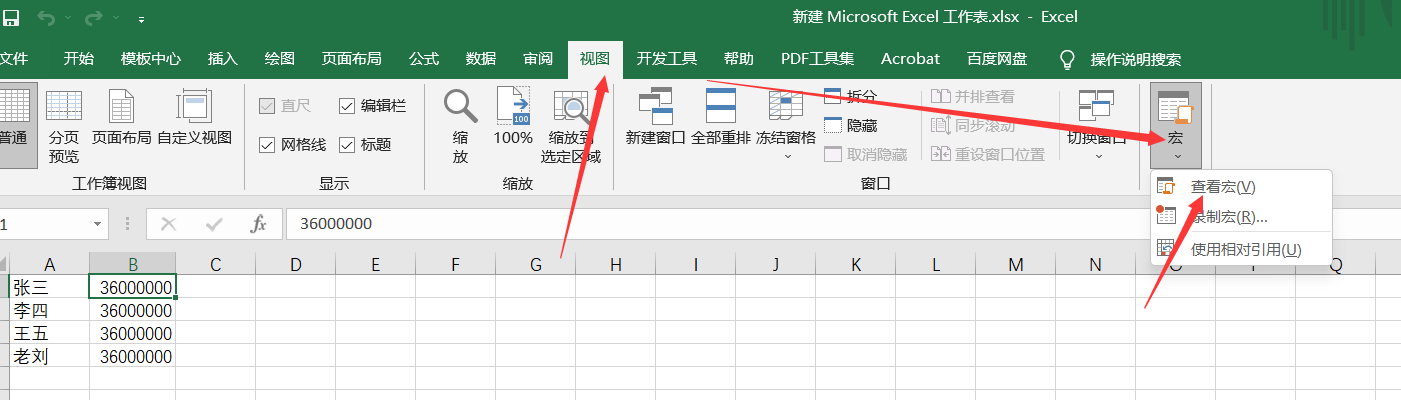 1.点击“视图”,找到【宏】,点击“查看宏”