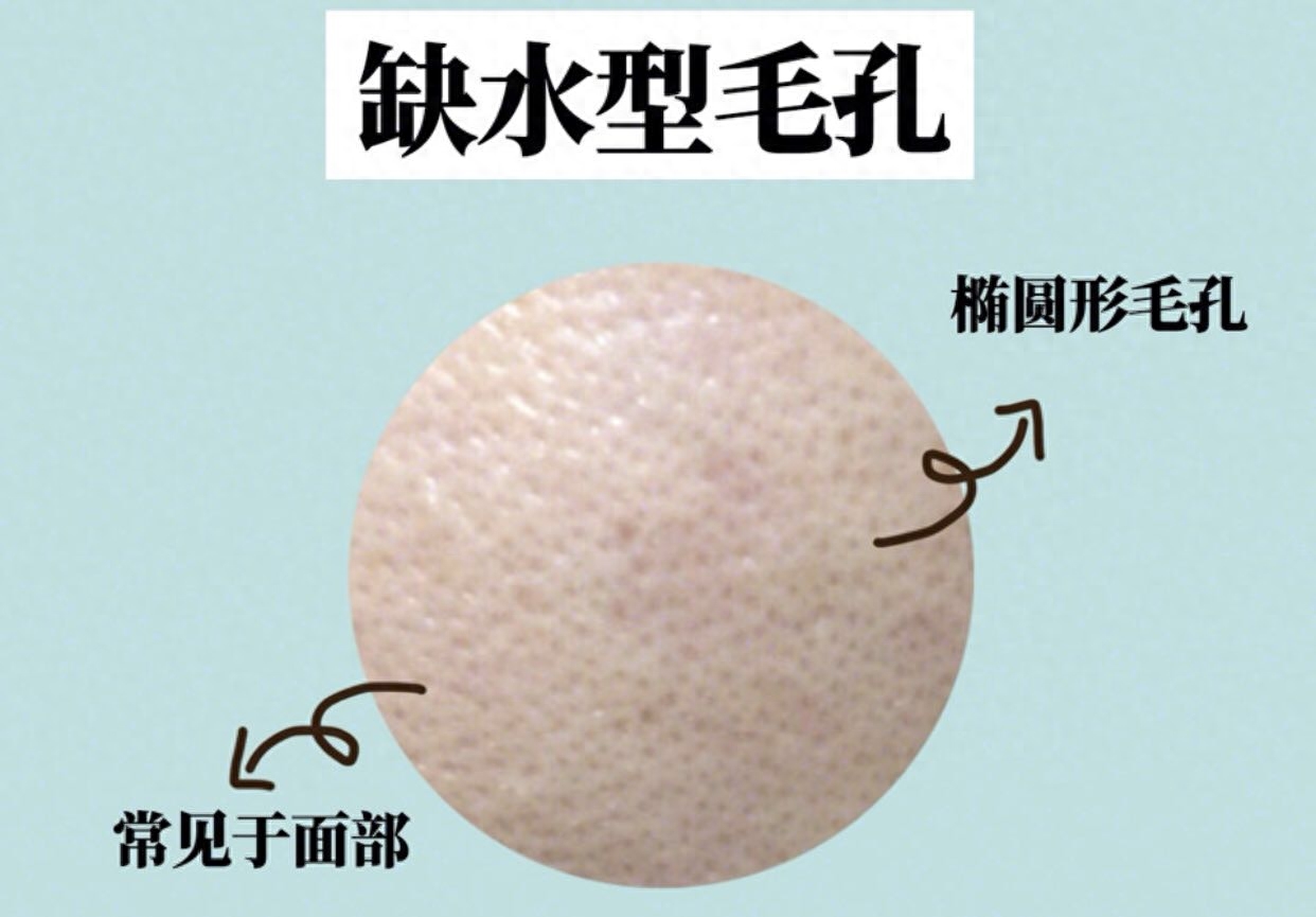 特征:毛孔是椭圆形的,那么就属于缺水型的毛孔粗大