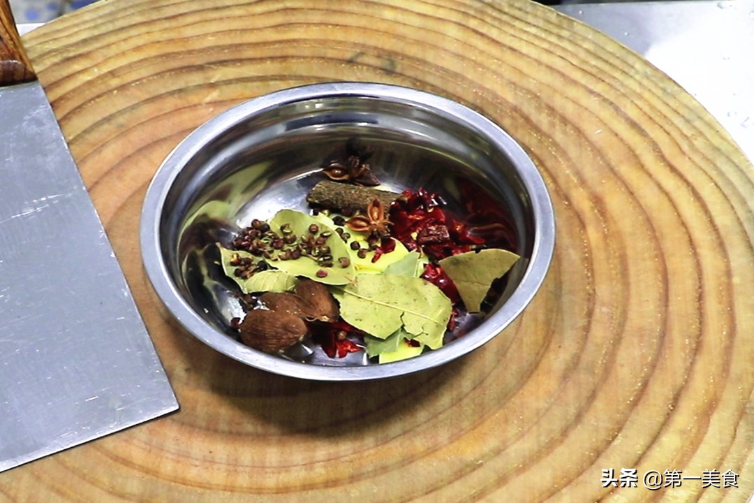 大料:生姜、干辣椒、草果、香叶、桂皮、八角、花椒