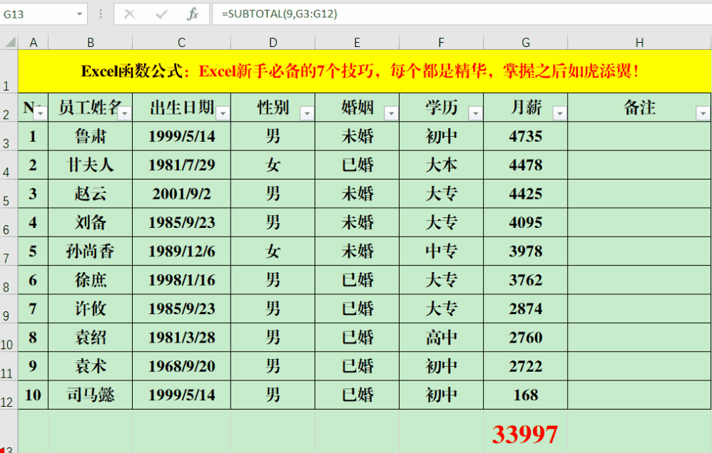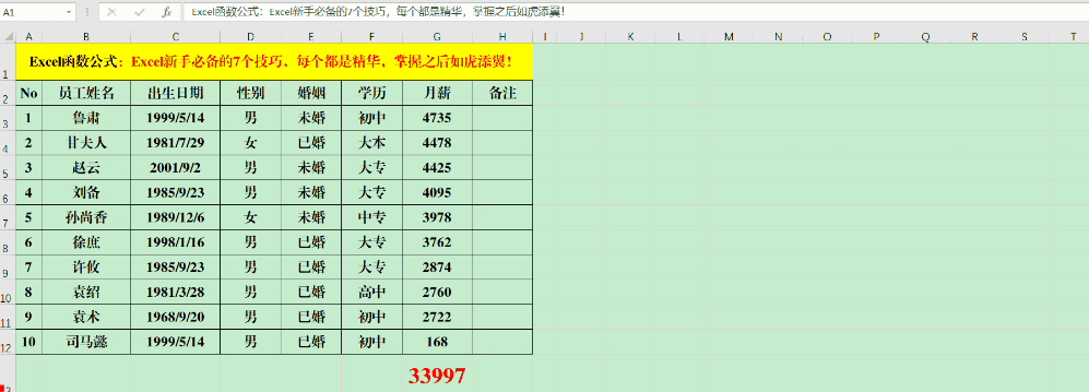 电子表格公式技巧(Excel新手必备的7个技巧,每个都是精华,掌握之后如虎添翼)