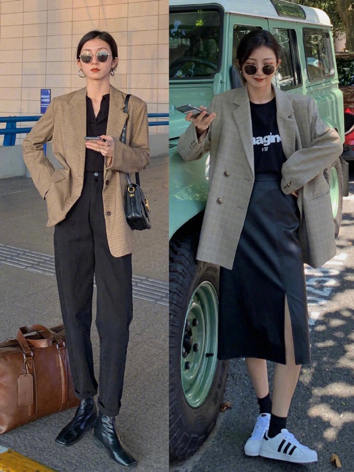 看似截然不同的单品搭配,满足了日常的穿搭,以及通勤的搭配,可以随意穿搭,透露出几分随意和帅气。