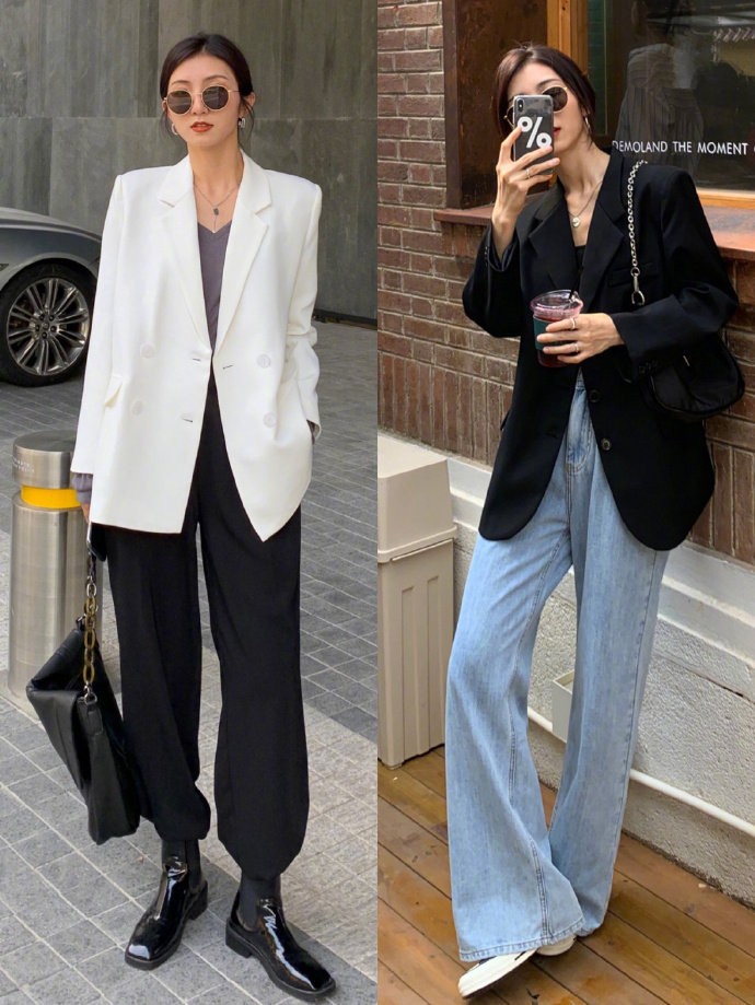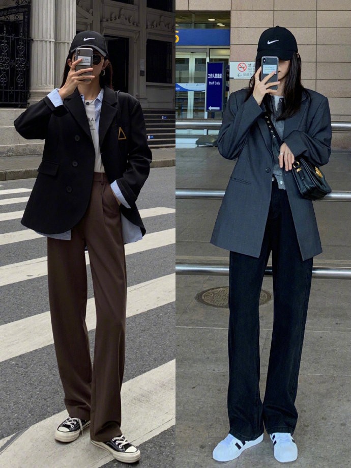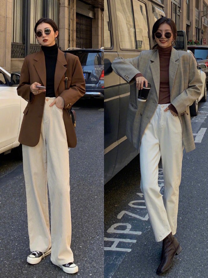 西装+高腰裤