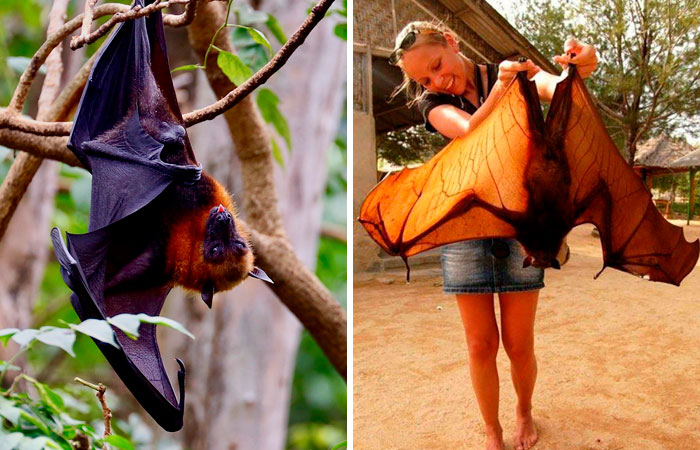 金冠飞狐,世界上最大的蝙蝠,翼展能达到1.5米,好在它是一种水果蝙蝠,只吃素。