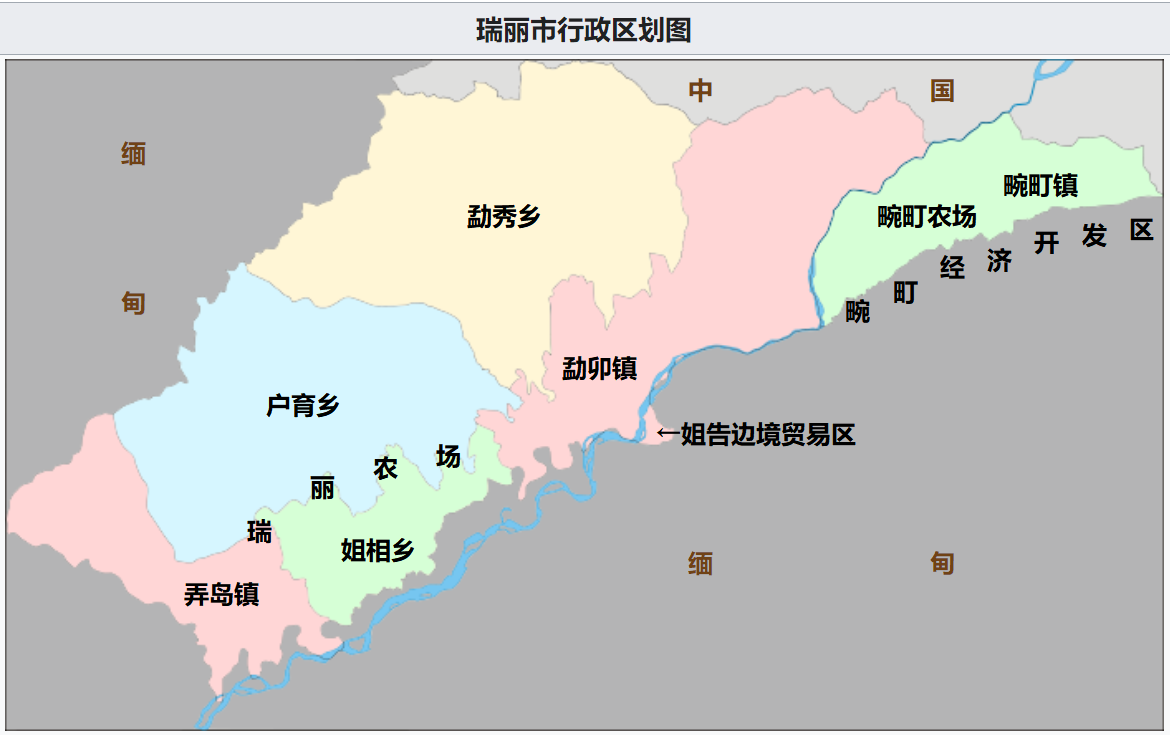 瑞丽市是我国云南省德宏傣族景颇族自治州的一个县级市,位于云南省西部,总面积1020平方公里,人口约21万人,市政府驻地为勐卯镇。新中国成立后于1952年正式建县,1992年撤县设市(县级市)。