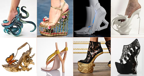 ▲图中有很多特殊的鞋款,有的鞋跟出现在不太正确的位置,有的甚至没有鞋跟。但是大家注意,无论是哪一款都遵从于“重心垂线稳定”的原理。