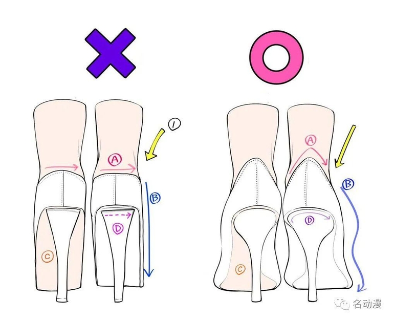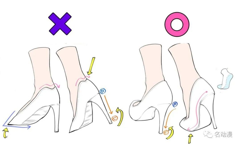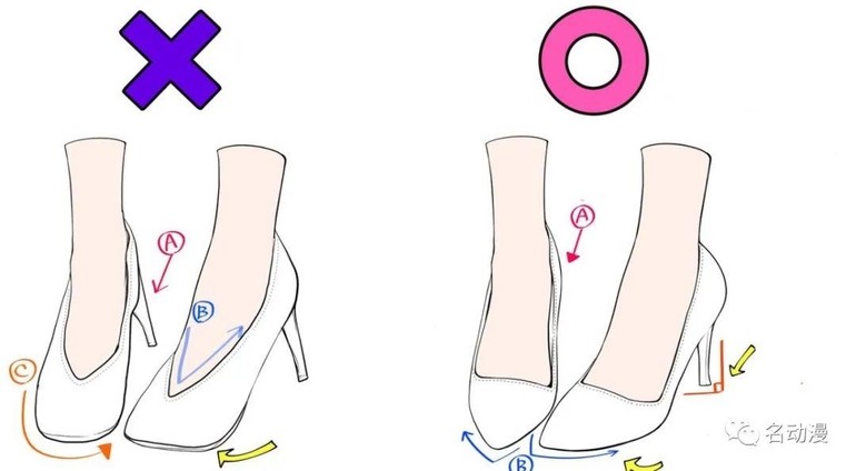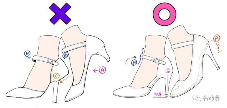 上文提到过高跟鞋的鞋型基本贴合脚身结构,所以高跟鞋画的是否标准好看,在一定程度上也取决于脚是否画的标准。