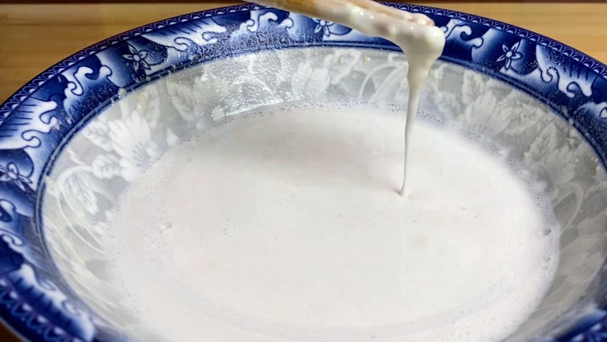 1、今天给大家分享的方法不用酵母粉,首先我们准备100克的面粉,在准备60毫升的凉白开,凉白开就是把水烧开放凉,这里不能直接用凉水哦,加入面粉中,一边加一边搅拌,一直把面糊搅拌成这样,比较粘稠的状态就可以了。现在我们往里边加入两勺白酒,大概是10克的样子,然后继续不停地用筷子搅拌,把粘稠的面团搅散。搅成稀一点的面糊,发面加白酒就是起到一个催化剂的作用,能让面发得更快。搅拌到面糊看起来非常的细腻,盖上保鲜膜,静置发酵2个小时左右就可以使用了。