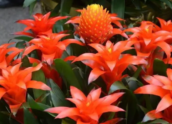 鸿运当头学名大花红星,是冬、春季室内观赏花卉。它四季常绿,花序美丽多姿,色彩丰富。它的花期非常长,花色艳丽,一直以来深受较多人的喜爱。鸿运当头的花朵非常奇特,开放在叶心的位置,苞片呈莲座状,颜色红润油亮,寓意着好运即将到来,看起来十分喜庆红火,因而又被叫做鸿运当头花,可在喜庆节日到来前,在家中摆放一盆鸿运当头花,增添节日喜庆的气氛。