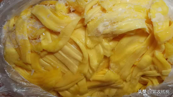 把菠萝蜜切开,取出果肉和果丝,把它们分开放到食用塑料袋或塑料盒中,然后给封闭上,再放到冰柜里冷冻。