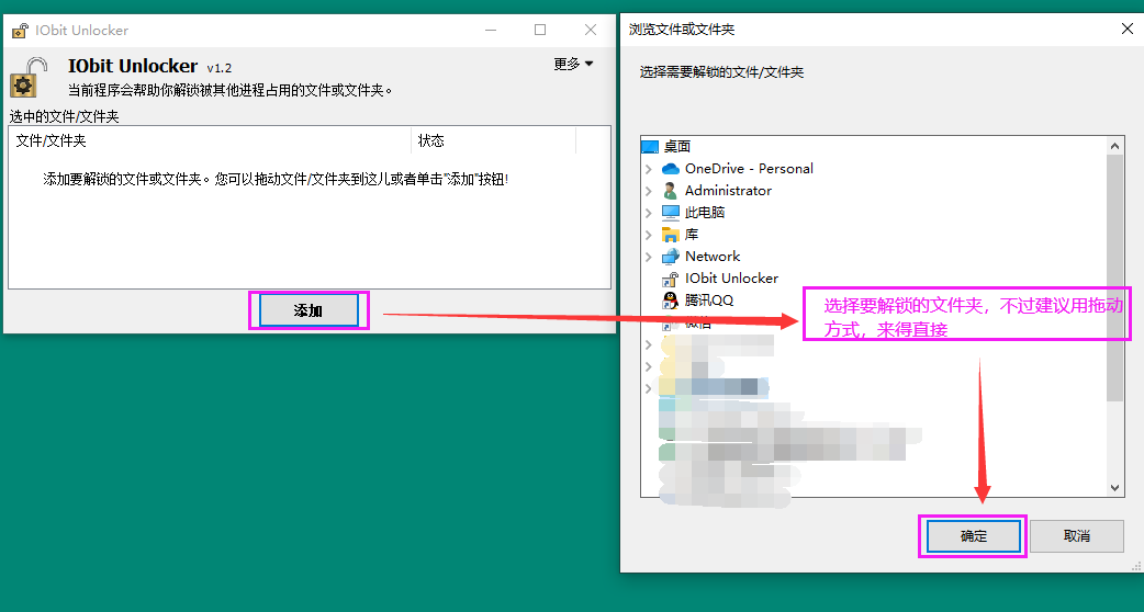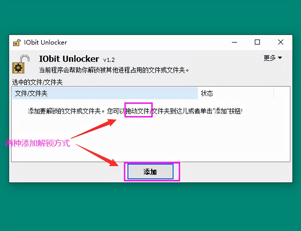 可以看到有两种添加解锁方式:支持拖动文件,或者点击添加按钮,