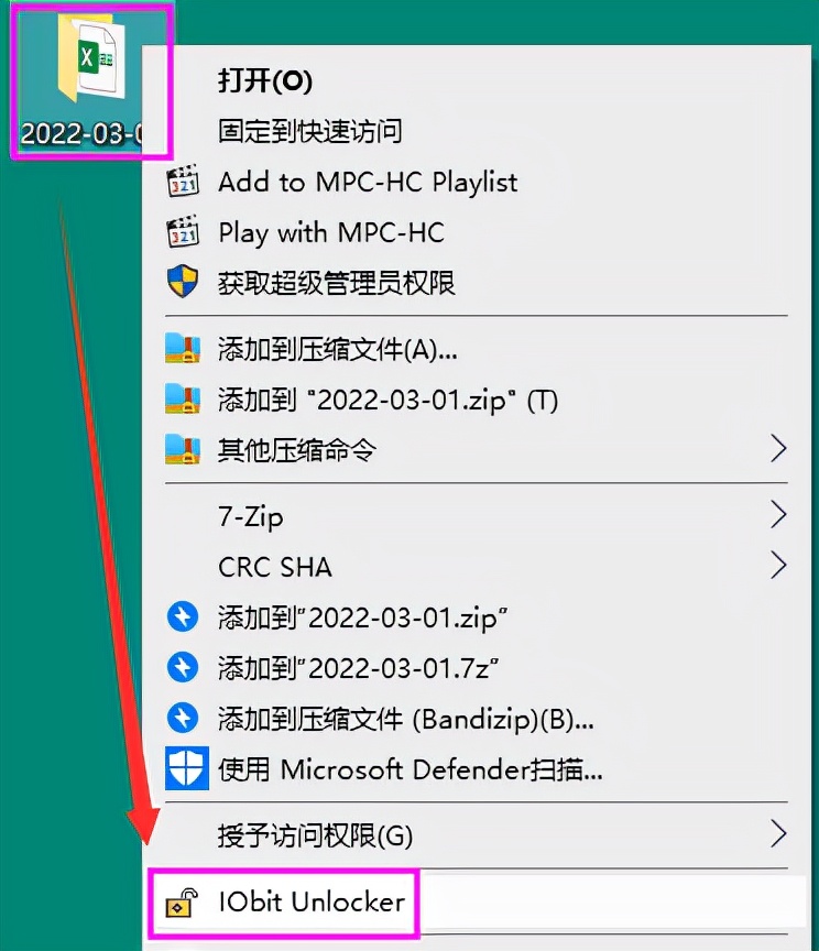 第一种,直接右击该文件夹,选择IObit Unlocker,