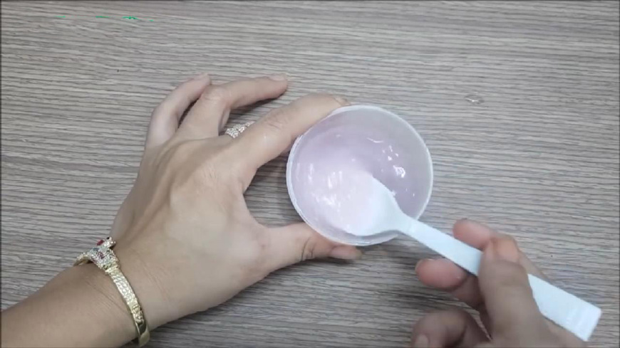 这次的成形剂是眼镜护理液,前面介绍过了,它的成形时间较慢,搅拌的时候要有耐心。