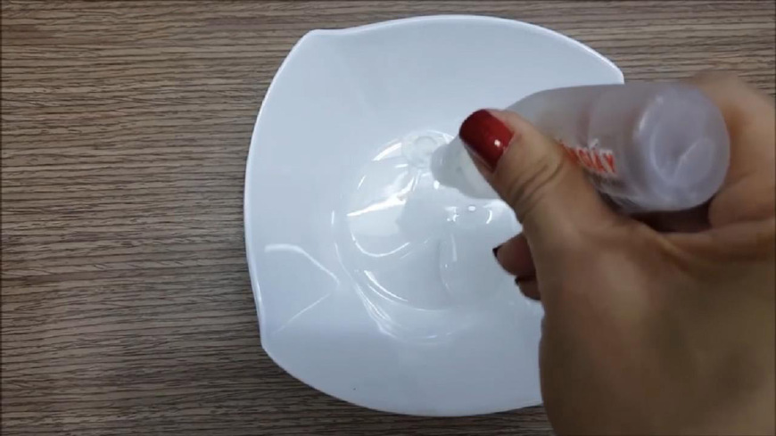 这次我们要做一个超级润滑的史莱姆。首先在容器中加入胶水。