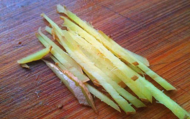 2.姜切细丝,香菜切段,干红椒切段备用。